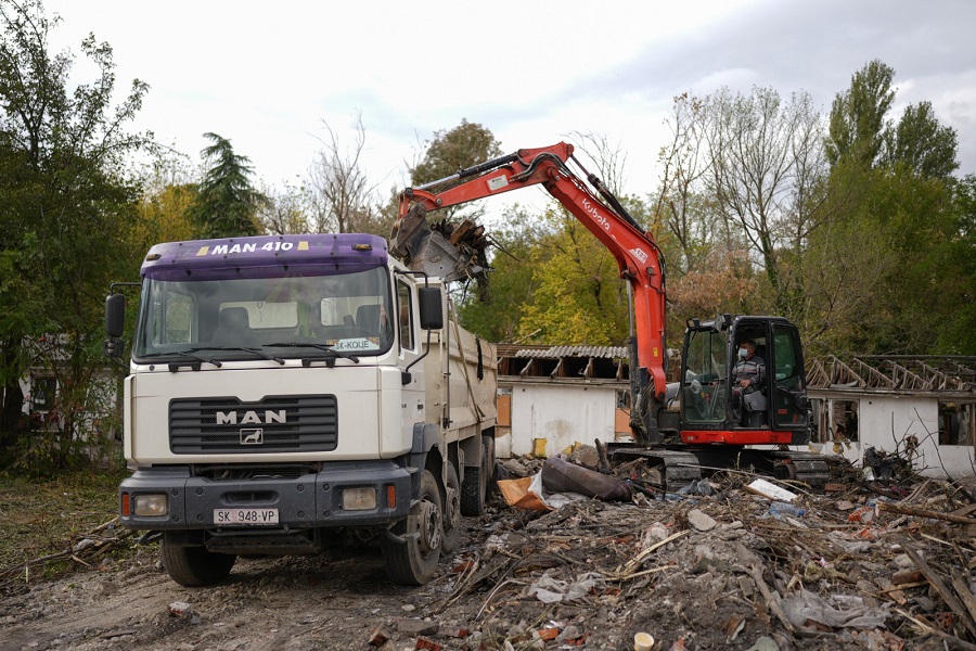 Градоначалникот на Општина Центар, Горан Герасимовски, изврши увид во активностите за целосно отстранување на опожарените бараки во кои беше сместен поранешниот Суд за прекршоци, кај салата „Партизан“ во Градски парк, Во рамки на акцијата се отстрануваат темелните бетонски плочи и армираните конструкции врз кои беа поставени бараките, како и отпадот што со години се таложел на локацијата.