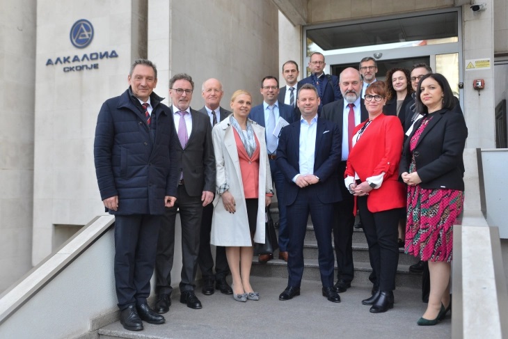 Германска економска делегација, составена од претставници на Министерството за економија на СР Германија и на германски компании, од потпретседателот на групацијата „BASF Централна и Југоисточна Европа“ и од високи претставници на Aмбасадата на СР Германија во Скопје, оствари работна посета на „Алкалоид“ АД Скопје.