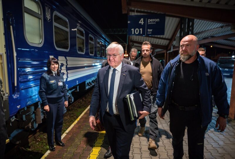 Штајнмаер, кој утрово пристигна во Киев со воз, треба да се сретне со украинскиот претседател Володимир Зеленски подоцна во текот на денот.