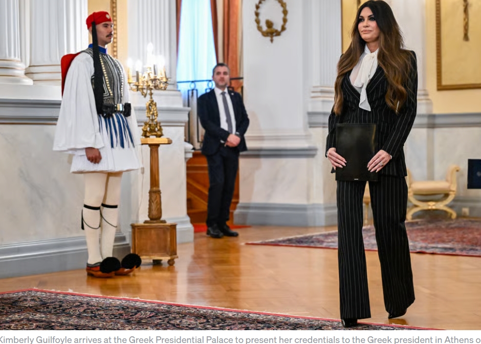 Поранешна водителка на Фокс њуз, која некогаш беше во брак со гувернерот на Калифорнија, Гевин Њусом и излегуваше со Доналд Трамп помладиот, Гилфојл го заслепи грчкиот главен град со блескави телевизиски емисии и несомнено дипломатско покажување сила. Пристапот на Гилфојл предизвика негодувања од некои опозициски личности загрижени за степенот до кој грчката политика се чини дека е обликувана од американската амбасада.