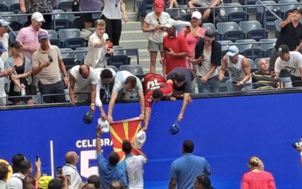 Ѓоковиќ по победата над Фриц израдува македонски навивач со автограм на знамето