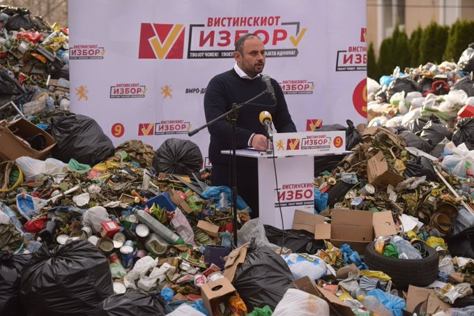 „Денешното наместено појавување на некои кандидати, за наводен спас од ѓубрето, само потврди дека оваа потенцијална зараза е смислена и организирана за собирање политички предизборни поени. И кога демек среќни ќе се разбудиме покрај празни контејнери во нашите маала, доцна ќе заклучиме дека во нашата реалност, потрошувачката кошничка отишла во плафон, дека кампот за мигранти е веќе 80% полн, дека за Маршот на ангелите ќе чуеме само ако не им го исечат интернет кабелот на Инфомакс, додека картите во еден правец веќе ќе бидат чекирани, бидејќи реалноста одамна веќе не живее тука…“