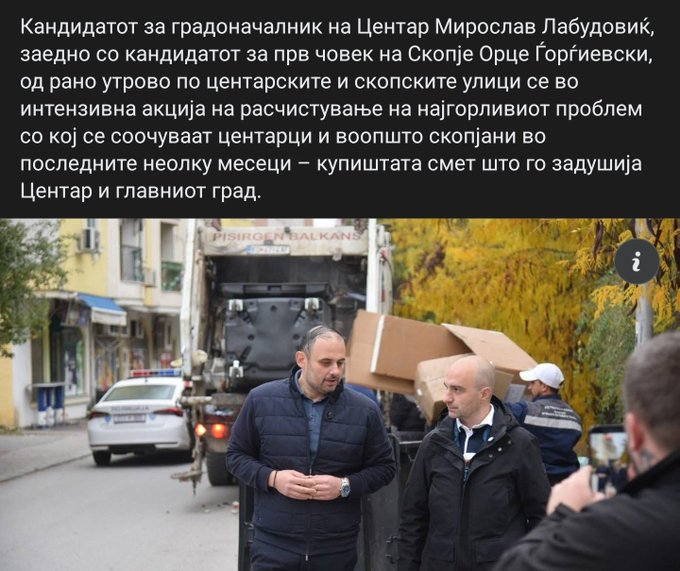 „Главните виновници за тоа што Скопје сега е затрупано со ѓубре тераат кампања со собирање на истото. Абе да ги гласате во втор круг уште појако“.
