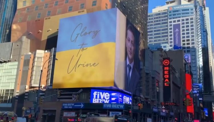 Станува збор за неверојатен кикс направен во форма на поздравна порака во центарот на Њујорк. Имено, на огромниот дигитален билборд наместо „Слава на Украина“ се појави пораката „Слава на урината“.
