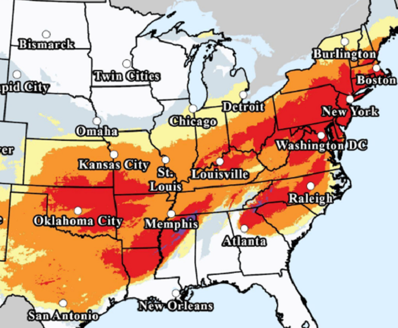 Предупредување за зимска бура е издадено за околу 140 милиони луѓе во областа од Ново Мексико до Нова Англија. Националната метеоролошка служба предвидува обилни снежни врнежи и појас од катастрофален замрзнат дожд што се протега од Источен Тексас до Северна Каролина. Метеоролозите велат дека штетата, особено во областите погодени од мразот, би можела да биде споредлива со онаа предизвикана од ураганите.