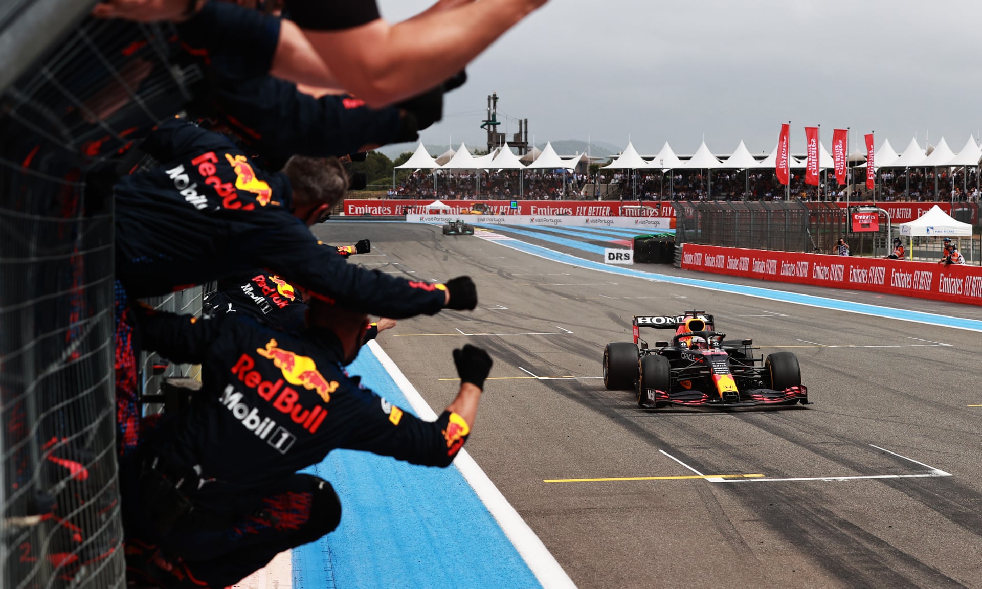 Неверојатна битка се водеше на Гран при на Франција меѓу двајцата најуспешни возачи – Луис Хамилтон и Макс Верстапен, која најпосле заврши со победа на Холанѓанецот. Тимот на Хамилтон, „Мерцедес“ се коцкаше со едно застанување за менување гуми и тоа изгледаше дека најпосле ќе им се исплати, но во претпоследниот круг Верстапен со леснотија го претекна кој возеше со втор сет помалку оштетени гуми.