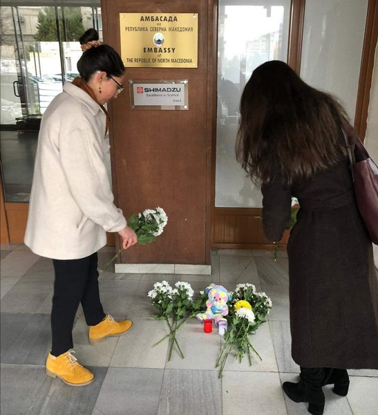 Граѓани положуваат цвеќе пред македонската Амбасадата во Софија