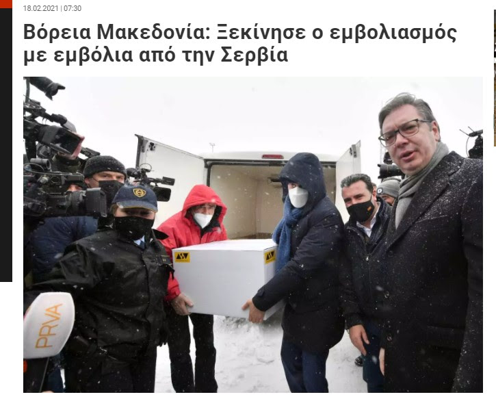 Грција – „Северна Македонија: Започна програмата на имунизација благодарение на вакцините што ги доби од Србија“; „Коронавирус: Започна вакцинацијата во Северна Македонија“;„Северна Македонија: Започна вакцинацијата со вакцините од Србија“, се дел од насловите во онлајн изданијата на грчките медиуми за почетокот на имунизацијата нашата земја, јави дописничката на МИА од Атина.