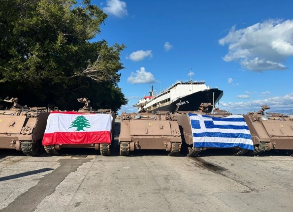 Со транспортен брод на грчката воена морнарица, од Атина за Бејрут, денеска биле пренесени 13 оклопни возила за транспорт на персонал (M-113), десет возила за општа намена (STEYR 680M) од два и пол тони, како и материјали и резервни делови за нивна поддршка, во рамките на донацијата од Грција за Либан.