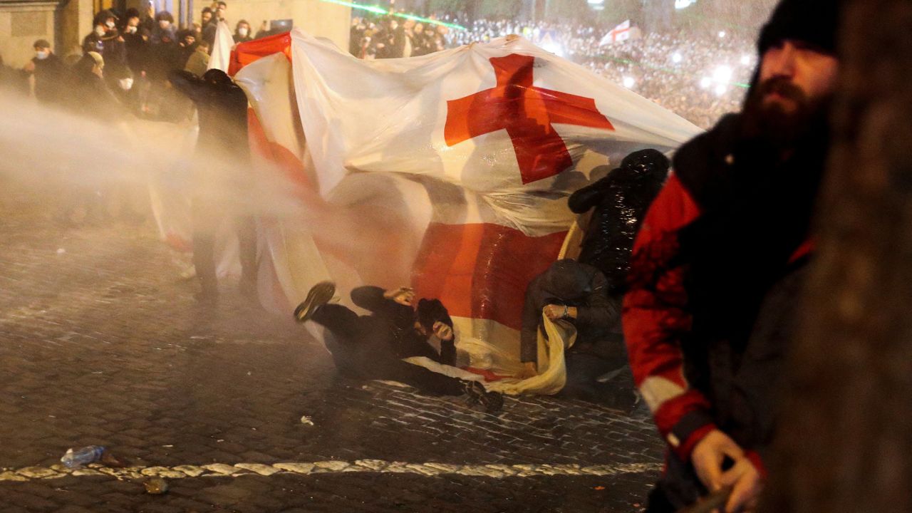Демонстрантите се судрија со полицијата во главниот град на Грузија, Тбилиси, откако парламентот го поддржа контроверзниот предлог-закон за кој критичарите сметаат дека ја ограничува слободата на медиумите и го задушува граѓанското општество.