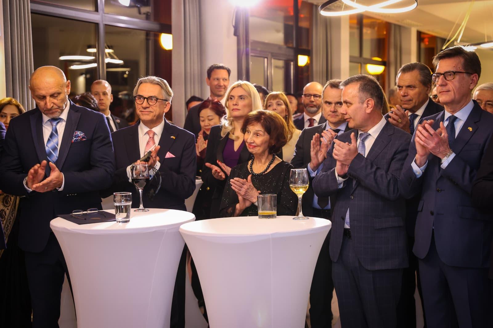 Доајенот на дипломатскиот кор, амбасадорот на Босна и Херцеговина, Драган Јаќимовиќ, во своето обраќање на приемот, во име на сите амбасадори изрази благодарност до претседателката за нејзината политика на отворени врати и континуирано пријателство со дипломатската заедница.