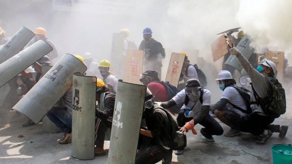 Воената хунта во текот на викендот употреби повеќе сила против масовните демонстрации на кои се бара предавање на власта и пуштање на слобода цивили како челницата Аунг Сан Су Кји.