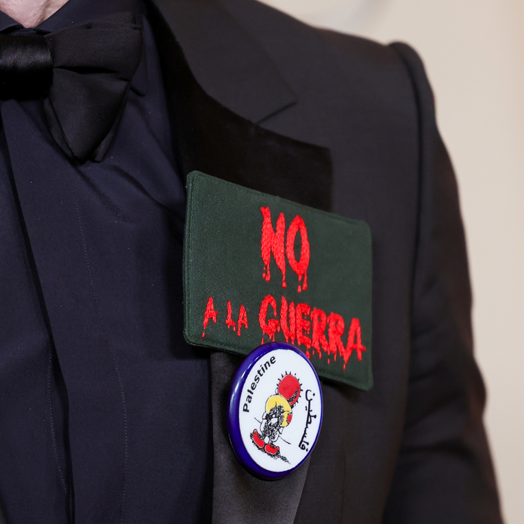 На овогодинешните Оскари, бројни други познати личности исто така носеа црвени беџеви со бел гулаб, официјалниот симбол на иницијативата „Уметници за прекин на огнот“. Тоа е група од повеќе од 500 актери и уметници, вклучувајќи го и Бардем, кои бараат траен прекин на огнот во Израел и Палестина, ослободување на сите заложници и итна испорака на хуманитарна помош за цивилите.