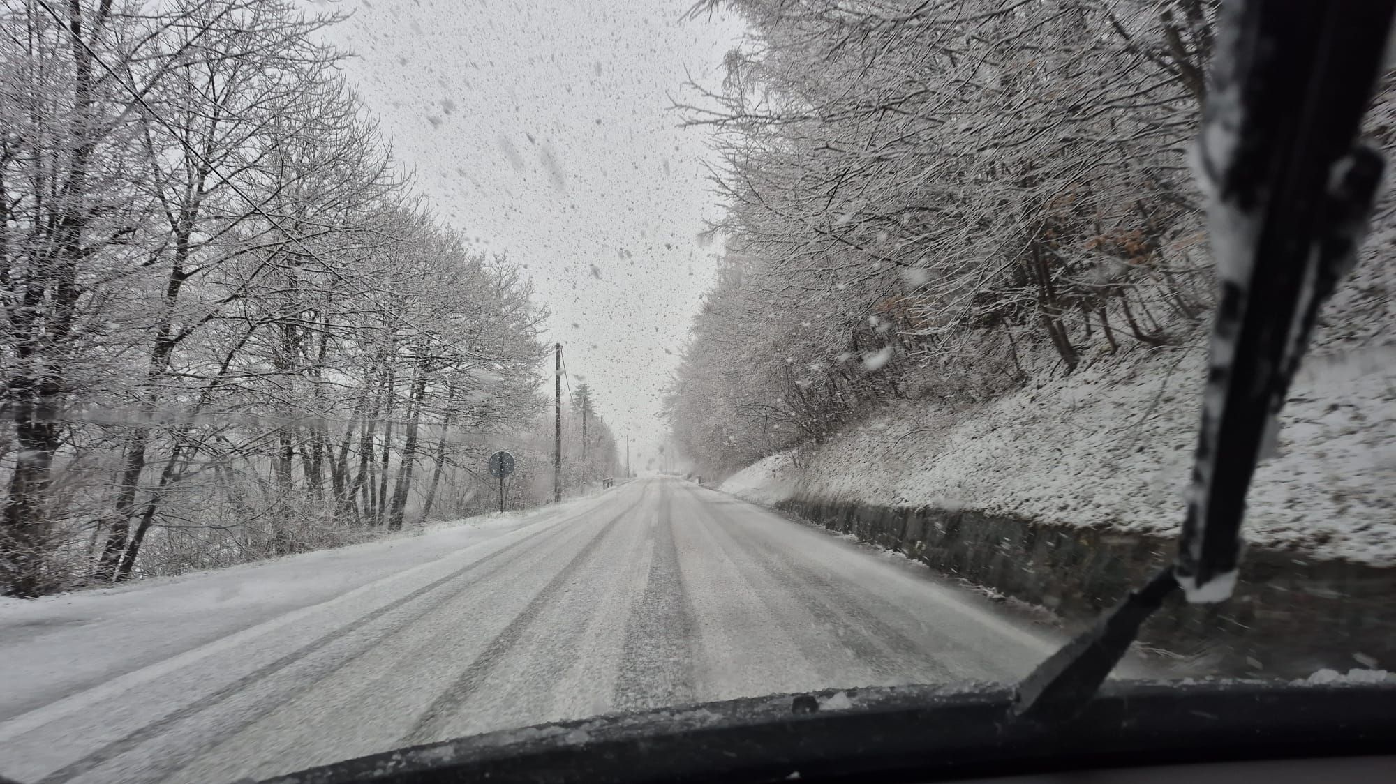 Репортерот на „Аваз“ ги сними сцените во Брадина, каде што патот беше целосно покриен од снег. Видливоста е значително намалена, а сообраќајот е отежнат, што претставува дополнителен предизвик за возачите што се движат по оваа делница.