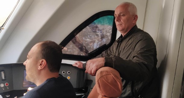 „Ова е нова пруга, средено е се’, работат патните премини, сѐ е исправно. Оваа пруга потсетува на Коридорот 10 Табановце – Гевгелија, но сега тој правец треба да се реновира, а овој е нов“, вели машиновозачот Зајков и покажува дека на патните премини рампите се спуштени, возилата чекаат за помине возот, а сигнализацијата функционира.