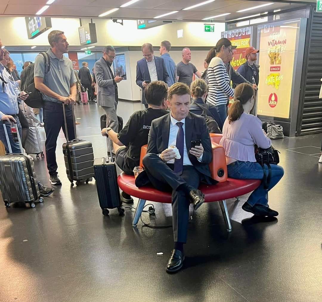 Министерот за надворешни работи ,Бујар Османи, објави фотографија од виенскиот аеродром како јаде сендвич.
