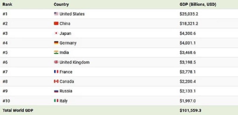 Само 5 земји го сочинуваа повеќе од половината од вкупниот светски БДП во 2022 година: САД, Кина, Јапонија, Индија и Германија. Интересно е што Индија годинава ја замени Велика Британија на врвот на листата.