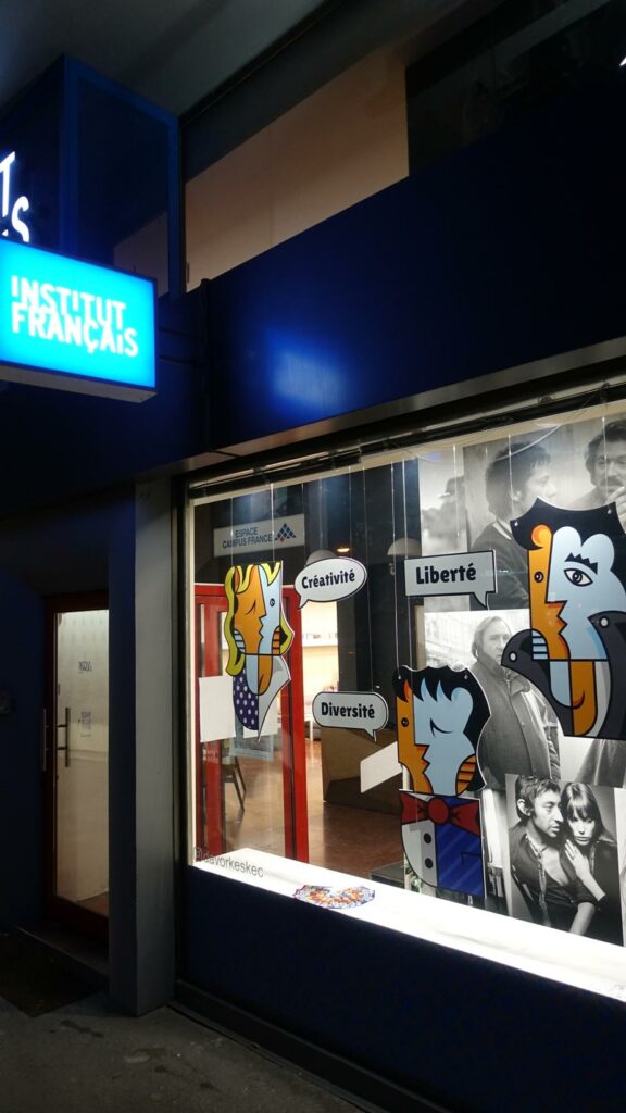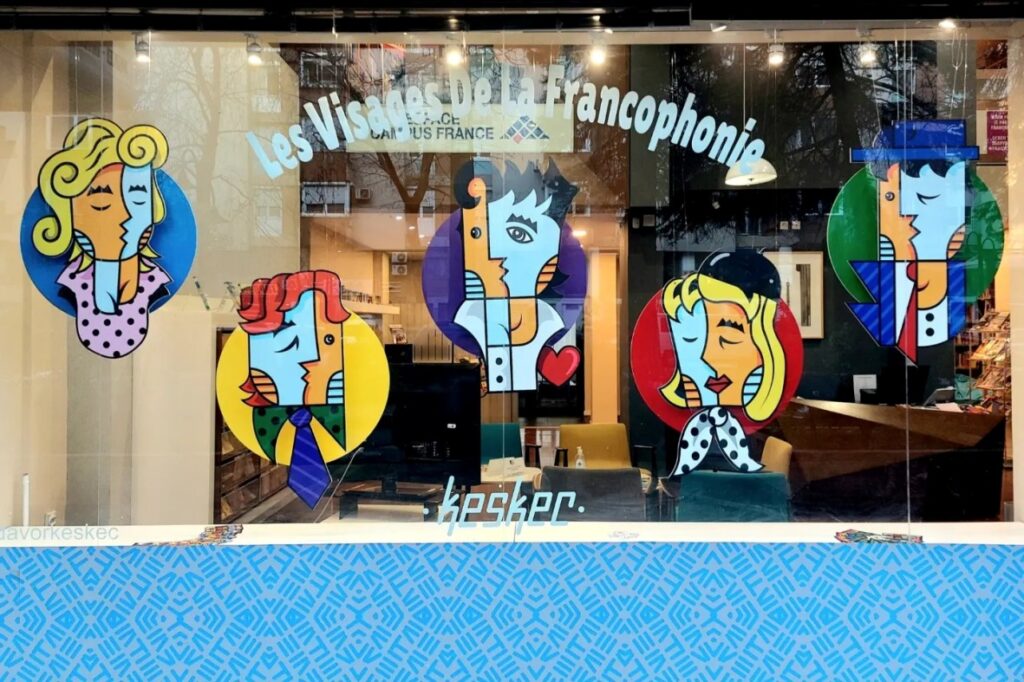 Инсталацијата „Лицата на Франкофонијата“ на уметникот Давор Кешќец, поставена во излогот на Францускиот институт, ќе биде отворена и во текот на месец април.