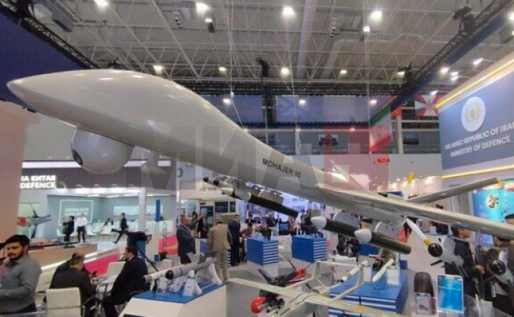 Иран го претстави својот дрон со долг дострел Мохаџер-10 на изложба на воена опрема во Русија.