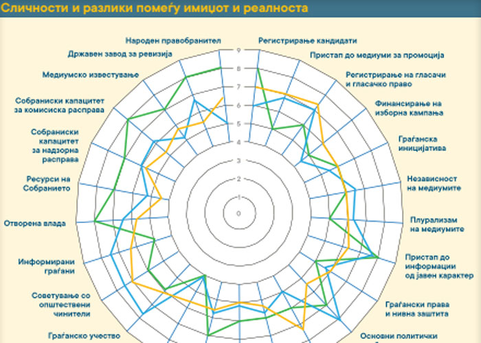 Како што стои во истражувањето, кај 12 од утврдените индикатори реалната состојба во однос на политичкиот критериум и поглавјето 23 во Северна Македонија е подобра, споредено со имиџот кој државата го има кај домашната и хрватската експертска јавност. Имиџот на државата кај домашната експертска јавност е подобар во однос на шест индикатори, споредено со реалната состојба. Додека, состојбата со имиџот на државата кај хрватската експертска јавност е подобра во однос на седум индикатори, споредено со реалната состојба. Реалната состојба е подобра во однос на имиџот кој државата го проектира во областите владеење на правото и извршна одговорност. Кај две области, пристап до информации и слобода на говор и извршен капацитет, имиџот кој државата го има кај домашната експертска јавност е подобар. Додека, во очите на хрватската експертска јавност, државата најдобро стои во однос на изборниот процес, односно граѓанските права и политичките слободи.