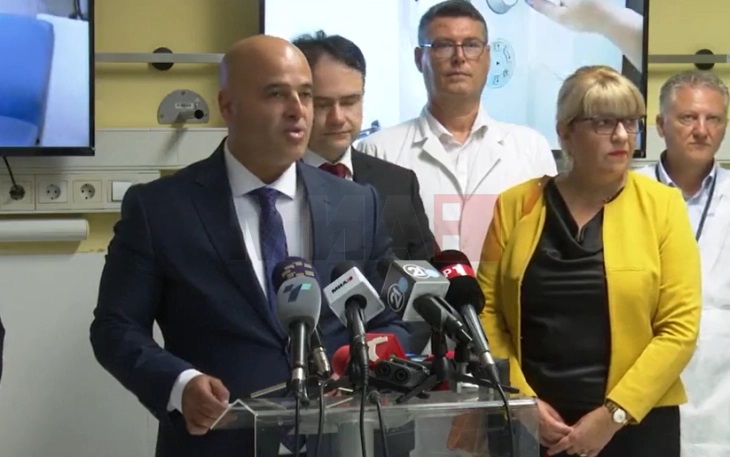 Изјава за медиуми на премиерот Димитар Ковачевски и министерот за здравство Фатмир Меџити по посетата на ГОБ „8-ми Септември“ каде присуствуваа на презентација на нова опрема и апарати.