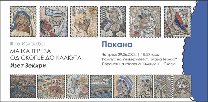 Изложба насловена „Мајка Тереза од Скопје до Калкута“ од Изет Зеќири, ректор на Универзитетот „Мајка Тереза“ во Скопје (УМТ) вечерва во 18, 30 часот ќе биде отворена во просториите на УМТ.