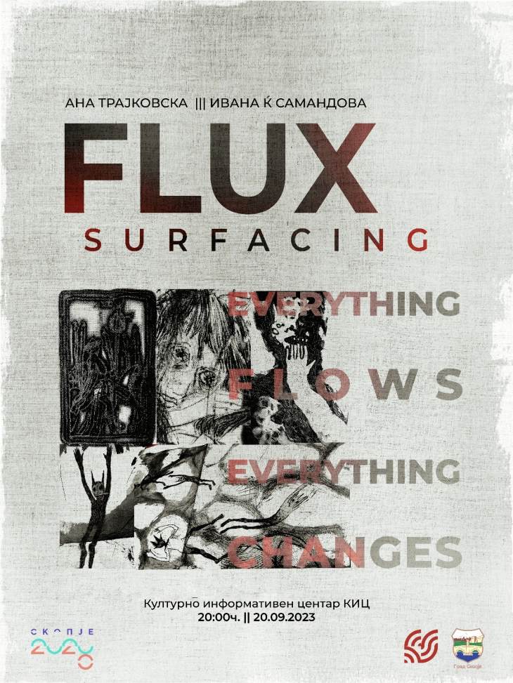 Во Културно-информативниот центар – Скопје вечер од 20 часот ќе биде отворена изложбата на графики и инсталација од Ана Трајковска и Ивана Самандова насловена „FLUX Surfacing“.