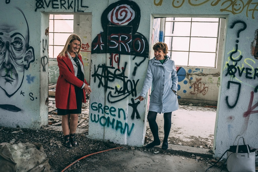 Зелен хуман град, Ана Петровска и Хајди Секвенц, советничката во Виена од Австриските Зелени, на изложба на мурали во Купрум – напуштена фабрика за бакар, кајшто купивме билет за зелена и хумана иднина.