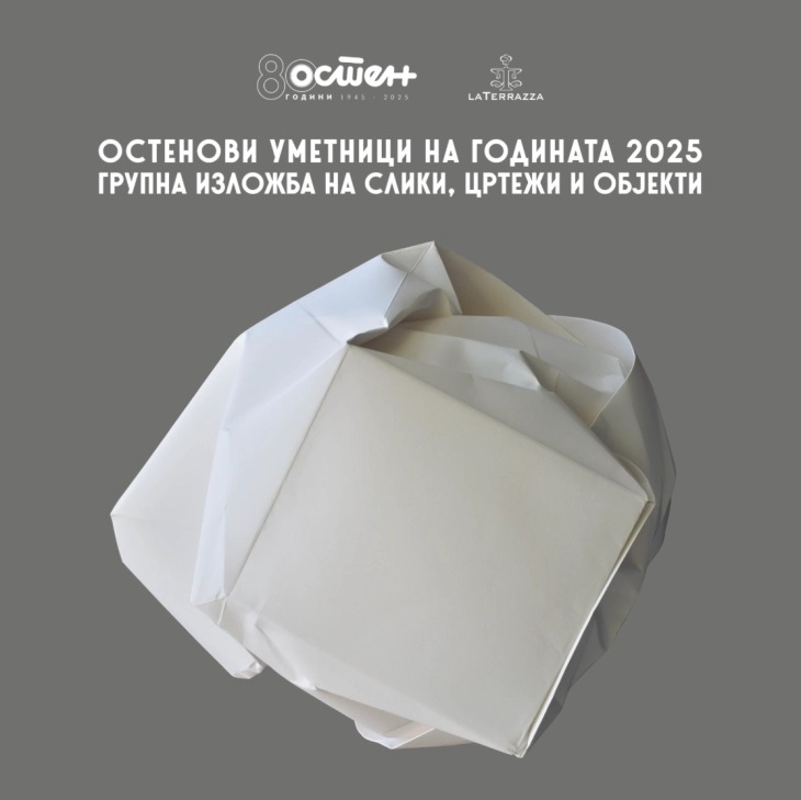 Во галерија ОСТЕН денеска напладне ќе биде отворена групната изложба на слики, цртежи и објекти „ОСТЕНОВИ УМЕТНИЦИ НА ГОДИНАТА 2025“.