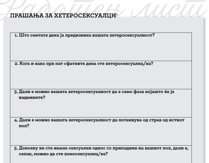 • Најголемиот број лица што злоставуваат деца се хетеросексуалци. Дали сметате дека е безбедно вашето дете да го праќате на училиште каде повеќето наставници се хетеросексуалци?