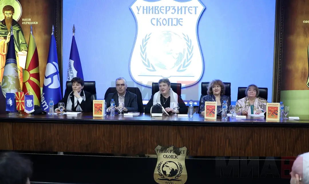 Македонскиот буквар „Абецедарот – сто години потоа“ (1925-2025) со авторски текстови од проф. д-р Нада Јурукова, проф. д-р Виолета Ачкоска и проф. д-р Елка Јачева Улчар денеска беше промовиран на Универзитетот „Скопје“.