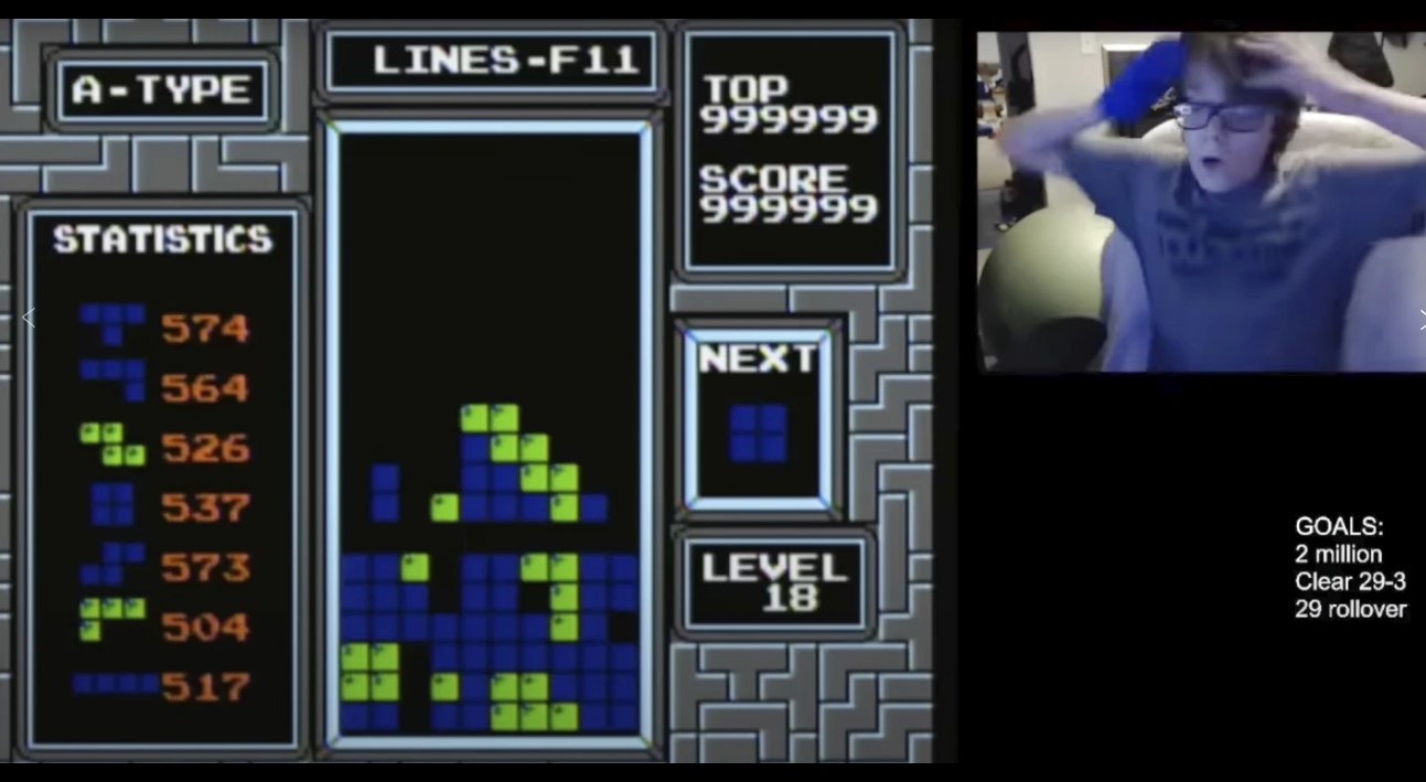 Тоа е исто така многу голема работа за играчите на Тетрис, кои многумина долго време го сметаа за непобедив. Тоа е делумно затоа што играта нема скриптен крај; тие форми од четири блокови едноставно продолжуваат да паѓаат без разлика колку сте добри во нивно натрупување во редови што исчезнуваат. Врвните играчи продолжија да наоѓаат начини да ја продолжат својата победничка серија со останување во играта за да достигнат сè повисоки нивоа, но на крајот играта ги победи сите.
