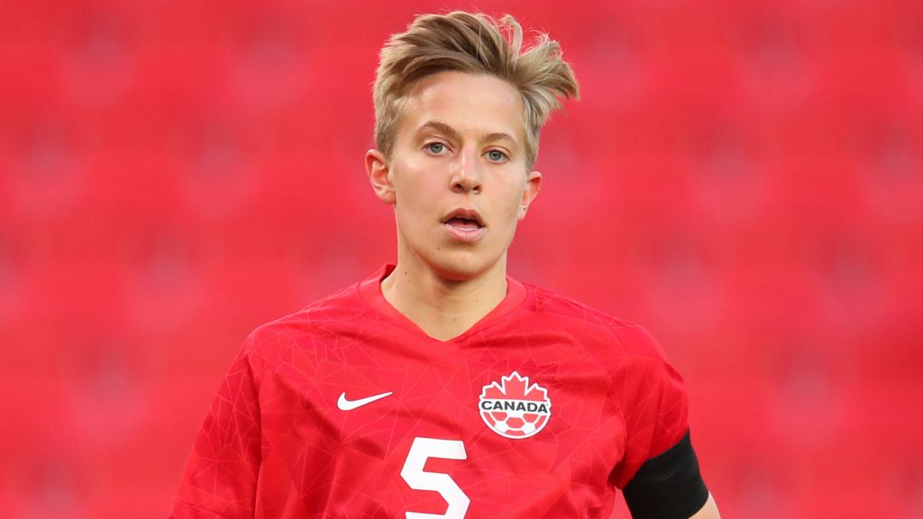 Исто така, во Токио, фудбалерот Квин, кој користи само едно име, е транс и не се идентификува како маж или жена – учествува со канадскиот женски фудбалски тим.