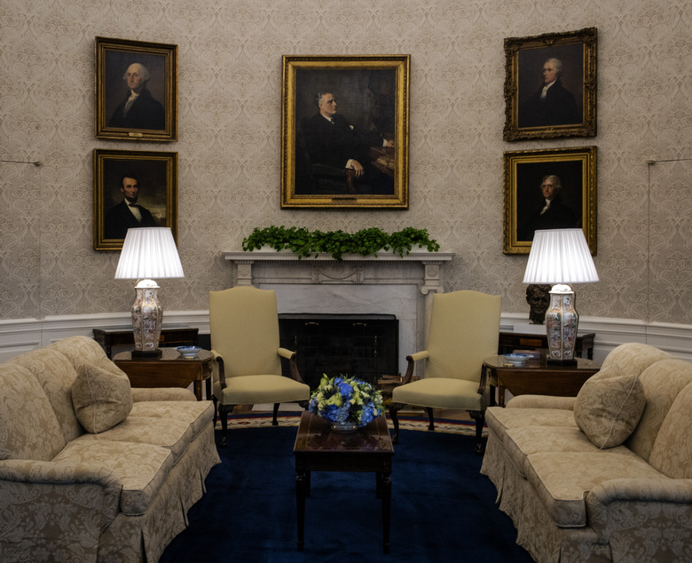 Мебелот беше сменет на Денот на инаугурацијата, рече еден соработник. За време на разгледувањето, од репортерот беше замолено да избегне да стапне на свежо вакумиран килим, така што тој ќе биде во беспрекорна состојба кога ќе пристигне Бајден.