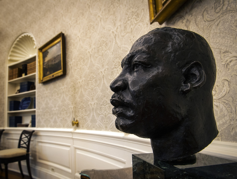 Обама имаше биста на Мартин Лутер Кинг во Овалната канцеларија, која Трамп ја чуваше, иако ја премести на друг дел од собата. (Вашингтон пост)
