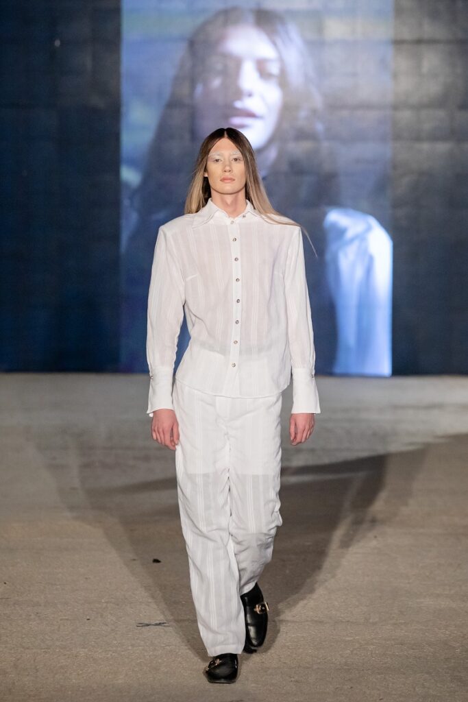 Српската дизајнерка Ана Ивковиќ (Anu Handmade) ја продолжи вечерта со колекцијата “Mila”, минималистичка и емотивна ода на женственоста и традицијата. Изработена од 100% памук и автентично српско платно, „Mila“ ја слави едноставноста, удобноста и природната убавина на секоја жена. Во свет каде модата често бара внимание, оваа колекција го врати мирот како највисок облик на елеганција.