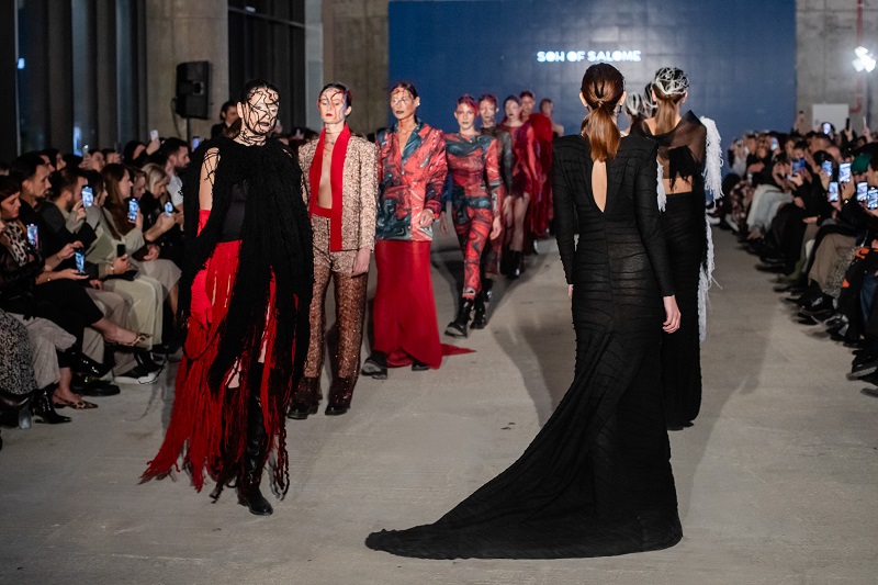 Son of Salome ја претстави својата F/W 25/26 колекција „The Fourteenth Day“ — поетски чин на љубов, тишина и прочистување. Десет силуети, изработени со прецизност и контраст, ја раскажаа приказната за болката што се претвора во убавина. Волна, тул и рачно обележани ткаенини создадоа естетика на спротивности — распаѓање и преродба, тежина и леснотија, темнина и светлина. Колекцијата беше поддржана од Министерството за култура и туризам.