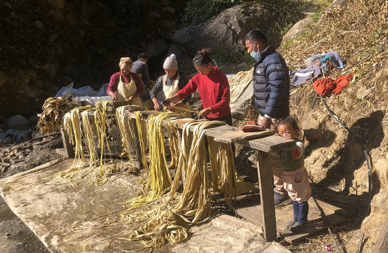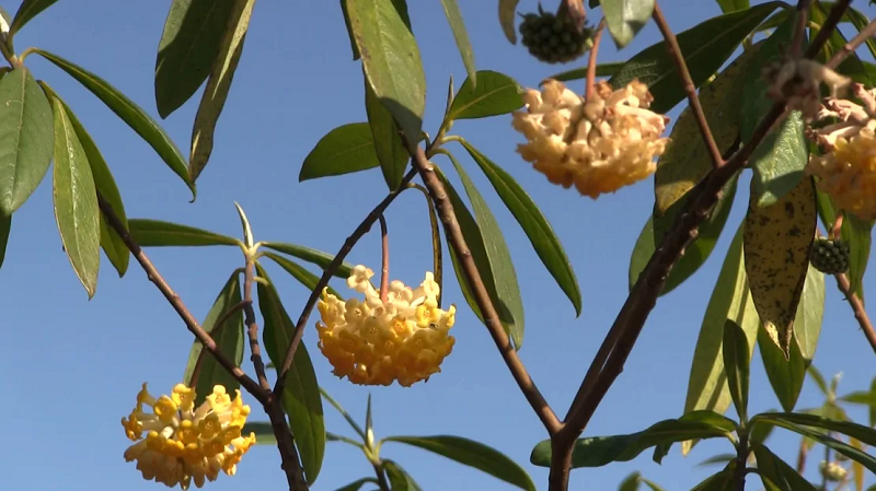 Овде, секоја пролет, ридовите се прелеваат во жолто – цветовите на растението мицумата, познато и како аргели или Хартиена грмушка (грмушка од хартија), со потекло од хималајскиот опсег. Неговата кора има долги, силни влакна кои се совршени за правење тенка, но издржлива хартија, според веб-страницата Канту.