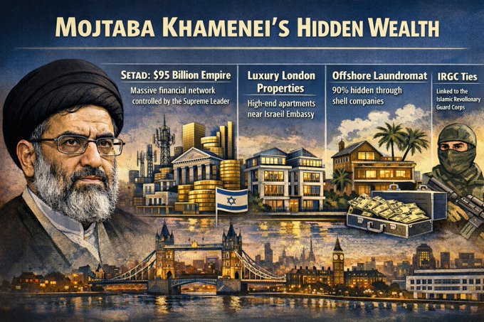 Неодамнешни извештаи илустрираат колку се широки овие врски. Истрагите за финансиската мрежа околу новиот врховен лидер Моџтаба Хамнеи, син на покојниот врховен лидер Али Хамнеи, го поврзаа со серија луксузни имоти во Лондон. Записите за имотот покажуваат дека два луксузни станови во Кенсингтон се купени во 2014 и 2016 година за околу 50 милиони фунти. Становите се наоѓаат на само неколку метри од израелската амбасада. Според извештаите, имотите биле регистрирани преку компании поврзани со иранскиот бизнисмен Али Ансари, долгогодишен соработник на режимските елити, кој оттогаш е санкциониран од британската влада поради неговата наводна улога во помагањето во финансирањето на активности поврзани со ИРГК.