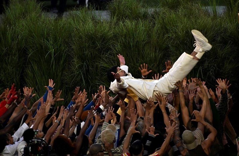 Шоуто започна со прошетка низ островот, низ минатиот и сегашниот живот во американската колонија: „хибарос“ сечат шеќерна трска, старци играат домино, продавачи на кокос и „пирати“. Експлодирачки столбови за електрична енергија беа исто така дел од сцената – потсетник на честите прекини на електричната енергија во Порторико и влошената електрична мрежа.