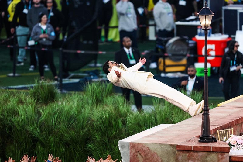Санта Клара – Бед Бани вети во својата реклама за полувремето на Супер Боул за Apple Music дека „целиот свет ќе танцува“ – и го исполни тоа додека изведуваше мешавина од неговите песни со Лејди Гага и Рики Мартин пред повеќе од 100 милиони гледачи.