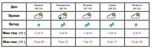 За викендотвремето ќе биде стабилно со ниски утрински температури, кои наместа се очекува да се спуштат под нула степени. Во недела кон крајот на денот и во понеделник ќе има повремени врнежи од дожд.