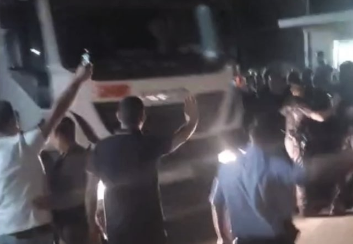 Началникот на полицијата прво ги убедуваше вработените да се тргнат и да направат пат, но тие не го слушаа. Потоа, им рече дека секој што ќе попречи полицаец во обезбедувањето на камионите ќе биде приведен.Иако дојде до буткање меѓу вработените и полицијата, сепак, беше избегнат поголем инцидент, а патот беше пробиен и камионите излегоа.