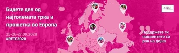 Кампања за борба против рак на дојка „Race for the Cure“ – „Напред розово“ ќе се одржи на 26 септември (недела) во Градскиот парк кај Школка во Скопје, а во нејзиното одбележување ќе се приклучат и 16 градови. Настанот е во организација на Здружението „Борка–За секој нов ден“, во соработка со најголемата европска алијанса на пациентски здруженија „Think PinkEurope“.