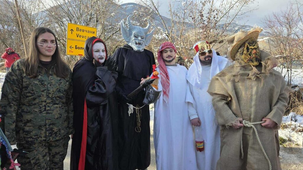 Групни и индивидувални маски почнаа да се движат низ вевчанските улици. Полека се собираат кон збирното место, односно почетокот на селото од каде традиционално ќе тргне дефилето на Вевчанскиот карневал.