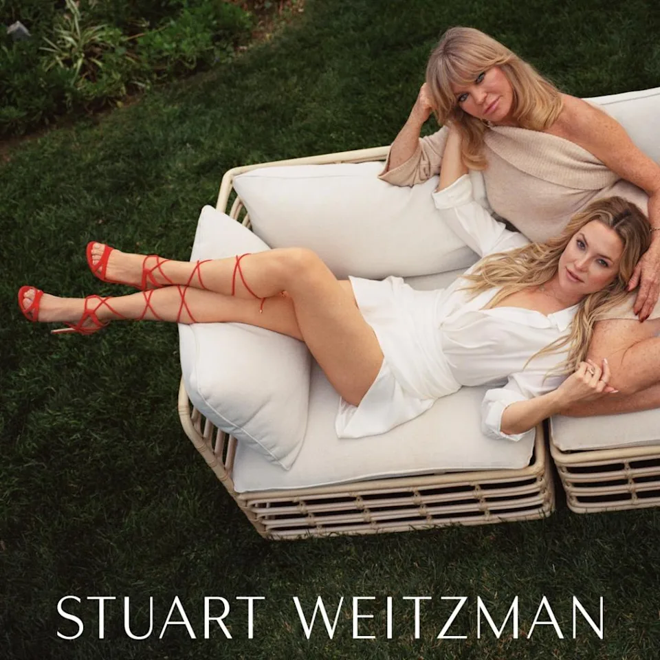 САД- Кејт Хадсон повторно се соединува со кралот на чевлите Стјуарт Вајцман за својата кампања за пролет 2022 година, заедно со специјален гостин: нејзината мајка, Голди Хоун.