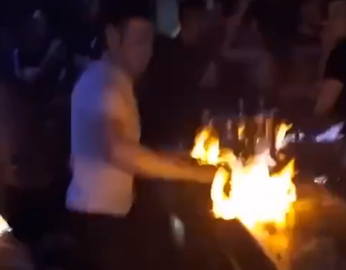 Според првите информации, се запалило шише во кое имало популарен пијалок, а огнот од локалот зафатил и неколку лица, како што може да се види на видеото кое кружи на социјалните мрежи.