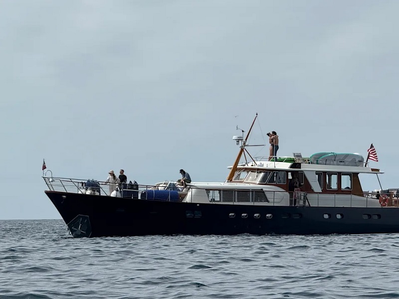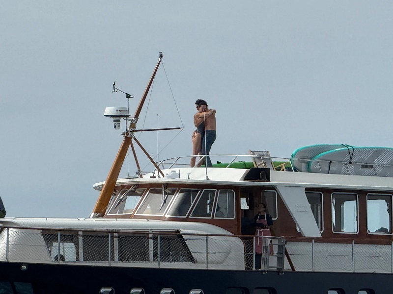 „Таа го запре својот брод до мал јавен брод за набљудување китови, а потоа почнаа да се бакнуваат“, изјави сведок на средбата за „Дејли меил“. „Не сфатив со кого е сè додека не ја видов тетоважата на раката на човекот и веднаш сфатив дека е Џастин Трудо.“