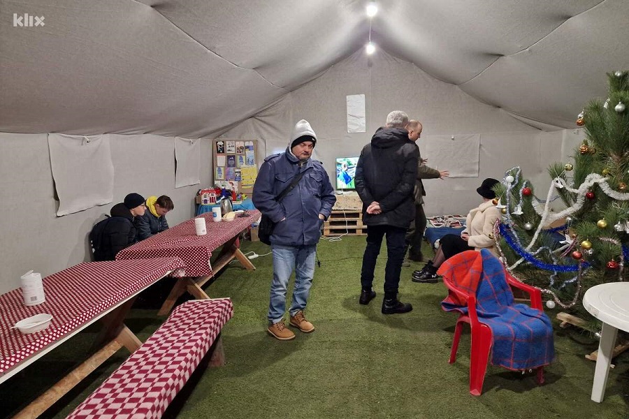 Како што пренесува klix.ba, на многу ниски температури, а во Киев било минус 7, поставен е шатор во кој се подготвува супа, која топла се дели на сите кои се во близина.