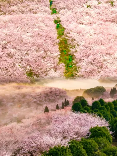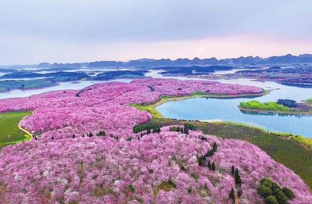 Најголемата градина на црешови цветови во светот е Пингба во Гуиџоу, југозападна Кина, каде што 700.000 дрвја покриваат 1.600 хектари во прекрасно море од розова боја.